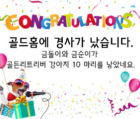 골드홈에 경사가 났습니다. [2019-10-01] 골드홈관리 2026-01-13 조회수 : 67 골드홈관리 0 67 01.13 22:12 골드홈에 경사가 났습니다. 금돌이와 금순이가 골든리트리버 강아지 10 마리를 낳았네요.잘키워서 골드홈 건축주님께 분양 해야 겠네요.